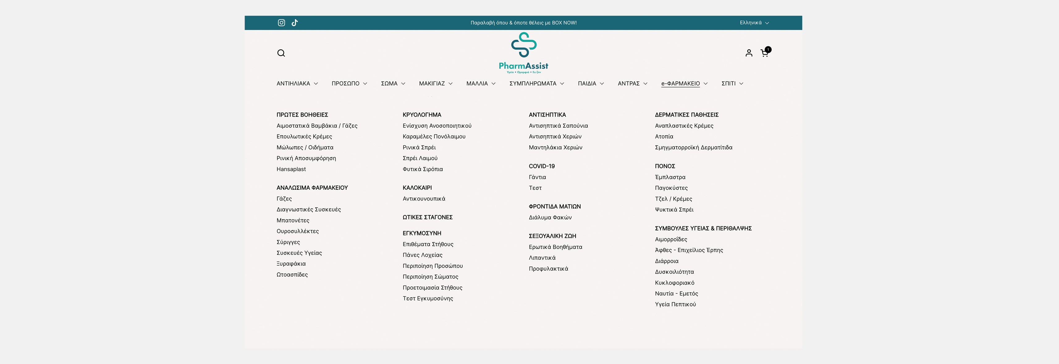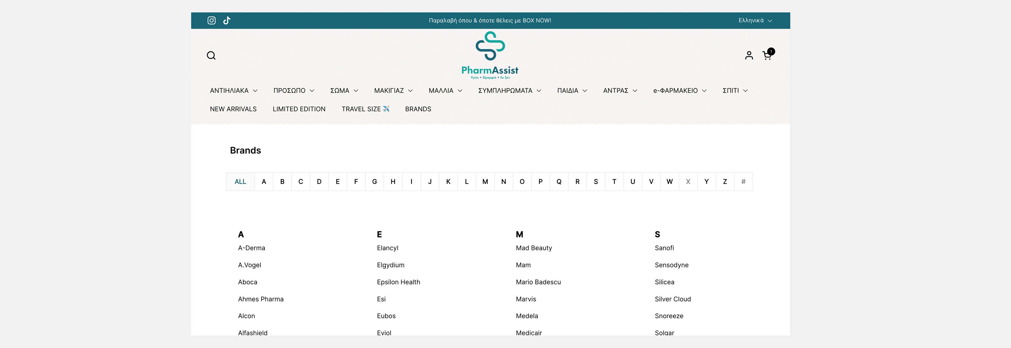 We partnered with Pharmassist Glyfada to deliver strategic Shopify enhancements, from integrating Box Now locker selection into the mini cart and cart, to creating a dedicated Brands page, structuring a detailed and intuitive menu, and updating pricing displays to comply with new regulations, all while maintaining a clean, user-friendly design that sets the store apart from the competition.